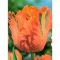 Огненный попугайный тюльпан сорта Orange Favourite станет самым ярким украшением Вашего сада. Ярко-оранжевые волнистые лепестки с темно-зеленой полосой по центру чем-то напоминают оперение южных птиц. По отзывам садоводов, эти тюльпаны отлично подходят для срезки, красиво смотрятся в букетах, стоят в воде долгое время, постепенно открываясь до 20-ти см в диаметре.